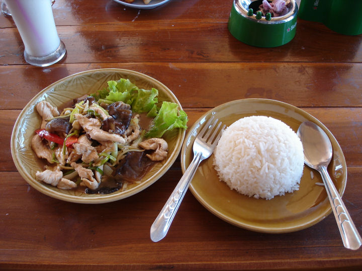 Paistettua kanaa ja inkivääriä (Kai phad king). Parasta!
