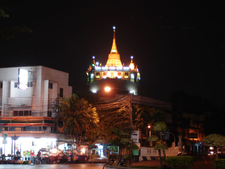 Wat Saket (Kultakukkula) iltavaloissaan.