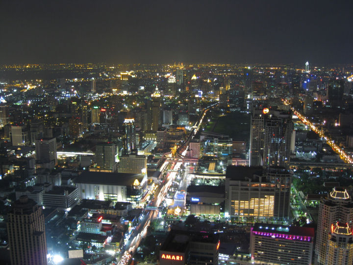 Bangkok yöllä Baiyoke II-tornista kuvattuna.