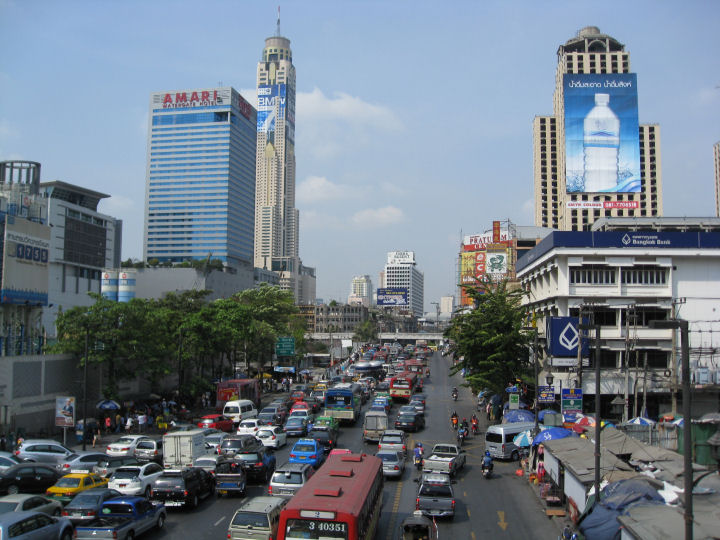 Ratchadamri road. Tukossa, niinkuin kaikki muutkin Bangkokin kadut.