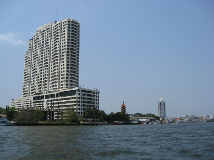 Korkeat hotellit reunustavat Chao Phraya-jokea.