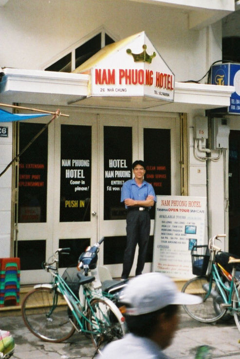 Nam Phuongin mukava pikkuhotelli. Hotellinjohtaja Ho Thi Du tuli ulos saakka saattamaan hotellivierasta reissussa eteenpƤin. HANOI, VIETNAM