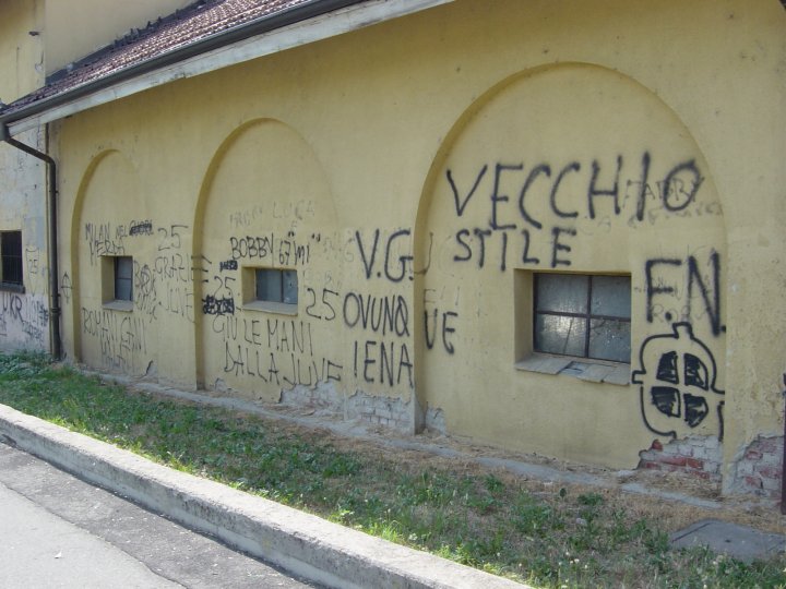 Futisfanien ja kannattajien terveisiä stadionin viereisissä rakennuksissa.
