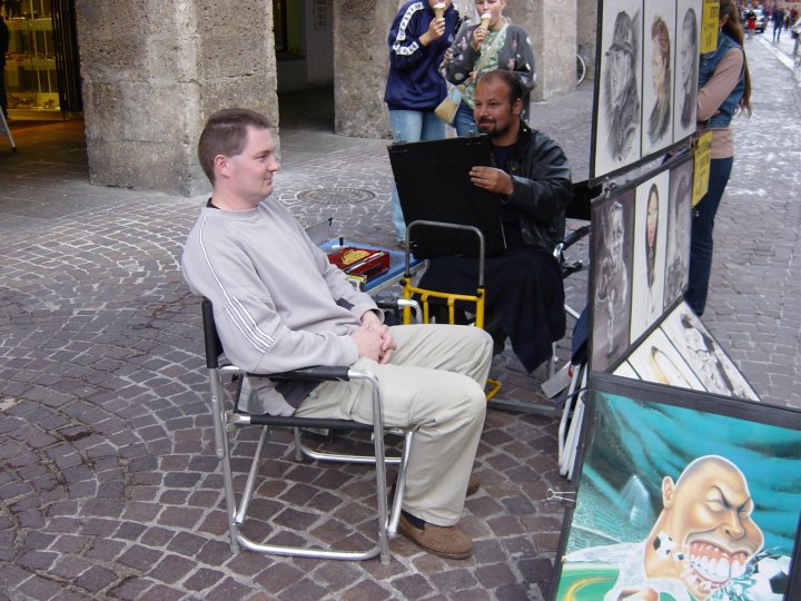 Karikatyyri-piirtäjän tuolilla.