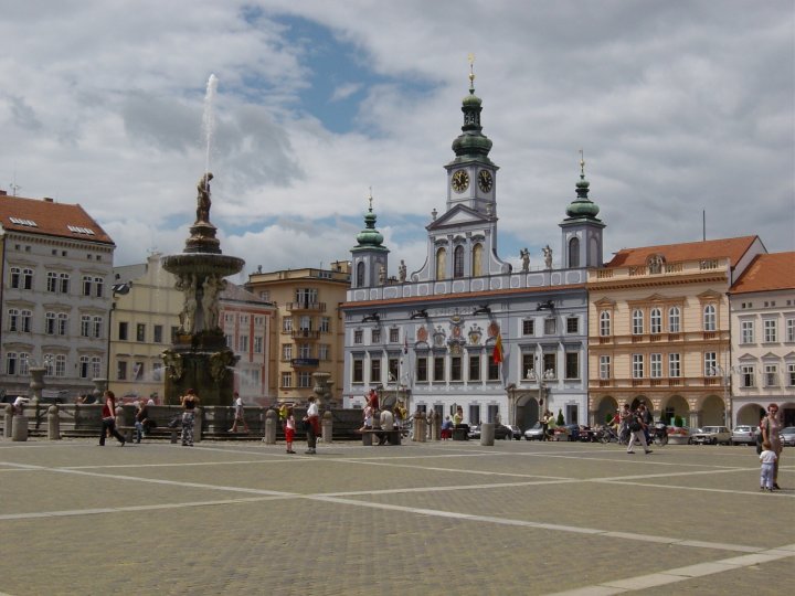 Simsonin suihkulähde ja kaupungintalo koristavat Ottokar II Premyslin aukiota.