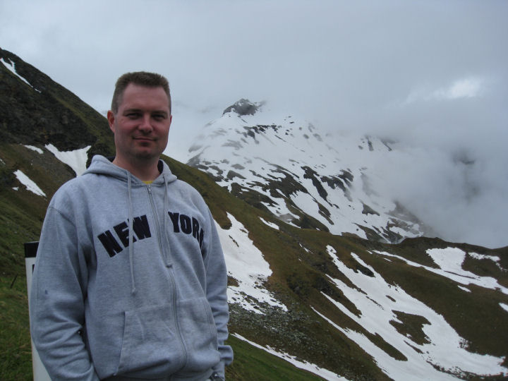 Alppien ylitys. Selkeällä säällä maisemat olisivat varmasti olleet hienot.
