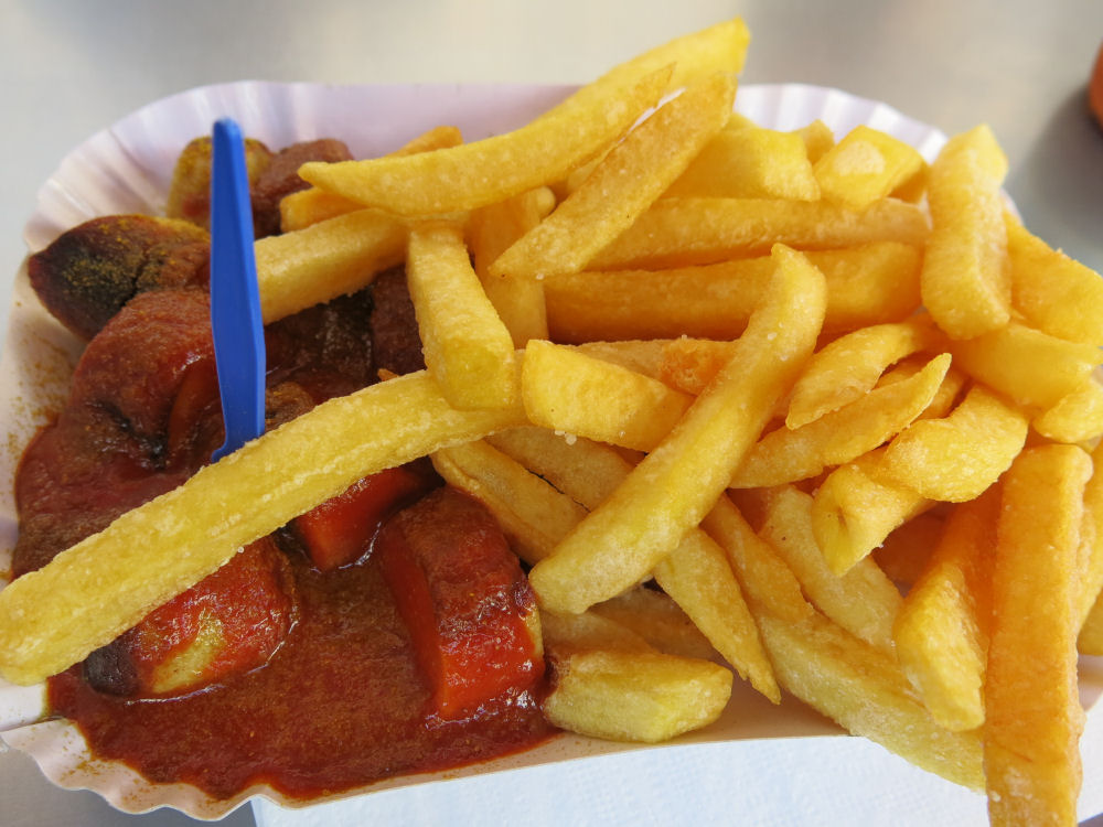 Currywurst mit pommes.
