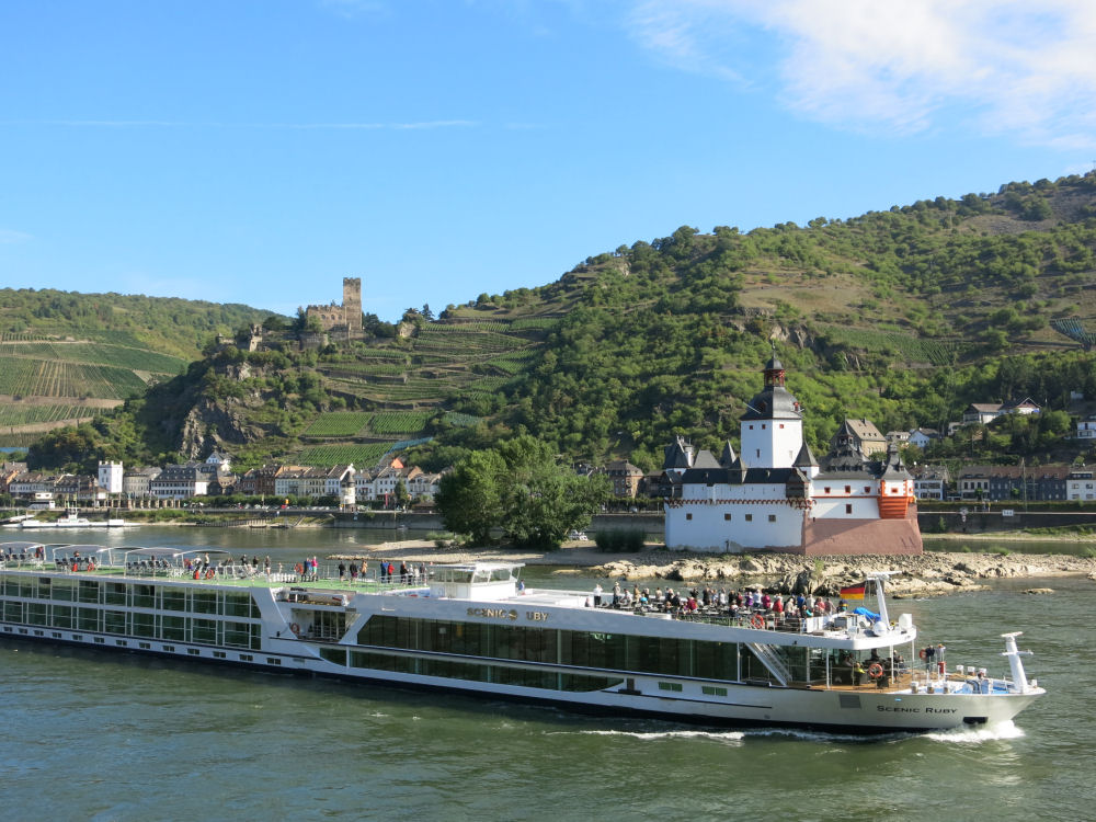 Suuret jokilaivat seilasivat ylös/alas Reiniä.