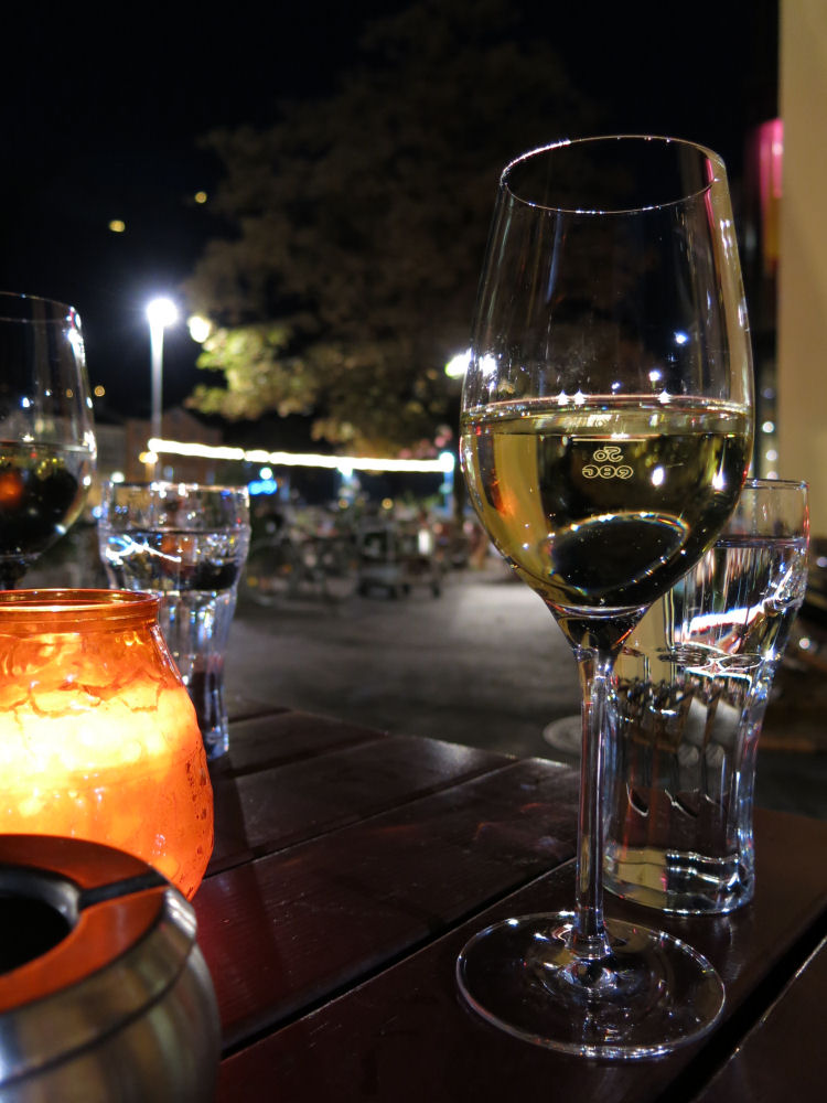 Valkoviinit kynttilänvalossa vielä illan päätteeksi. Huh...