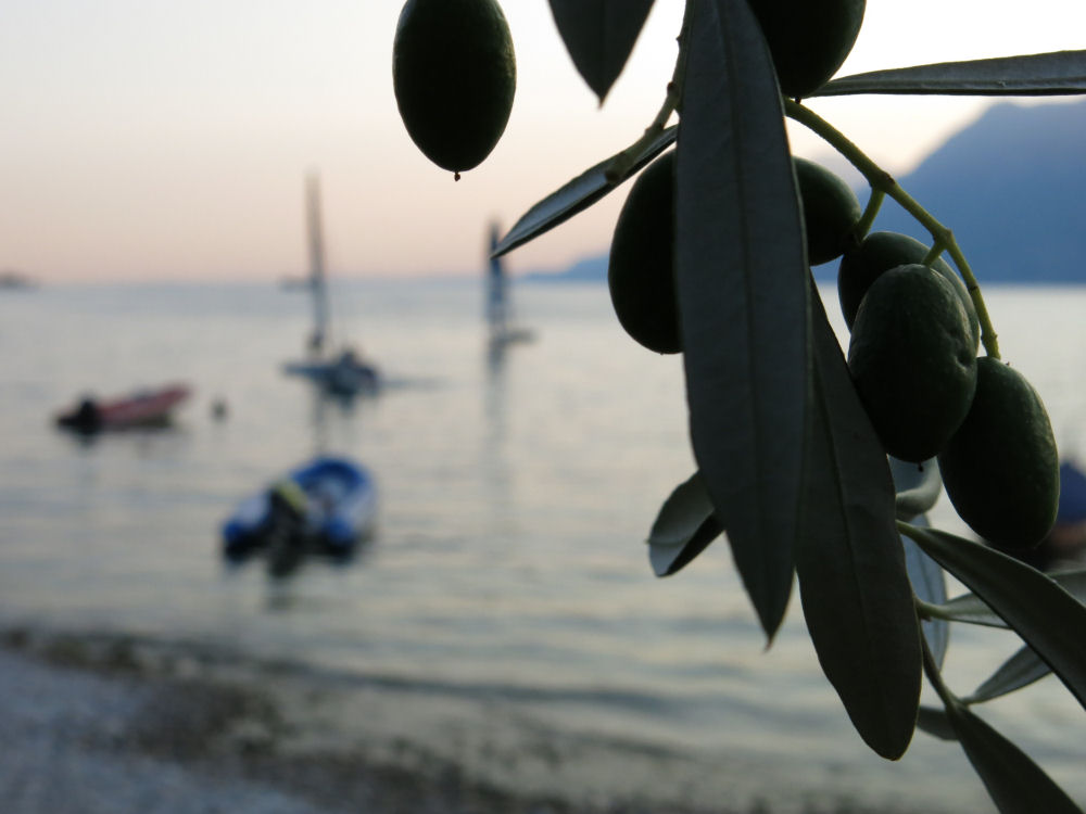 Oliivitarhoja on ympäri järveä.