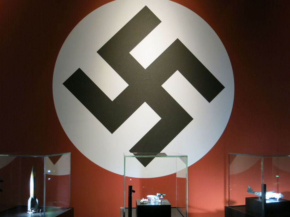 Bastogne War Museum. V-ohjusten pienoismallit ja natsilippu niin hienosti valaistuna, että varmaan itse Aatukin olisi mielissään. BASTOGNE