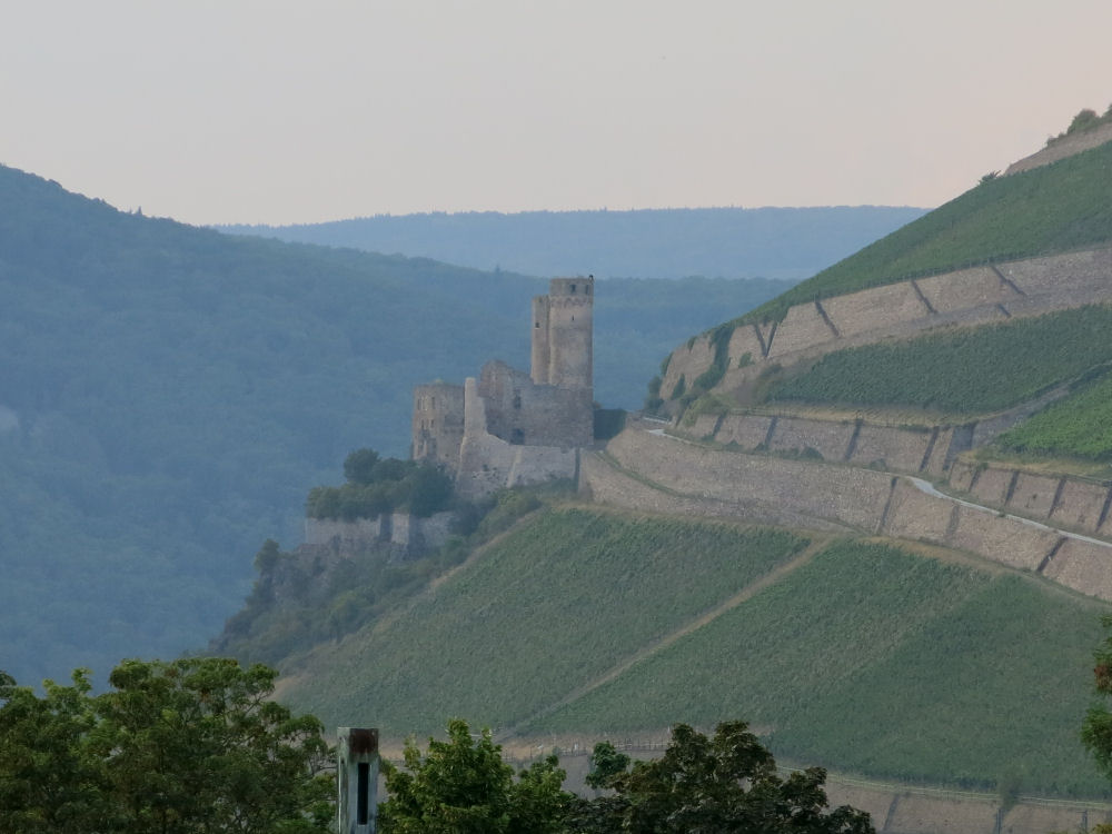 Ehrenfelsin linnan rauniot Reinin mutkassa.
