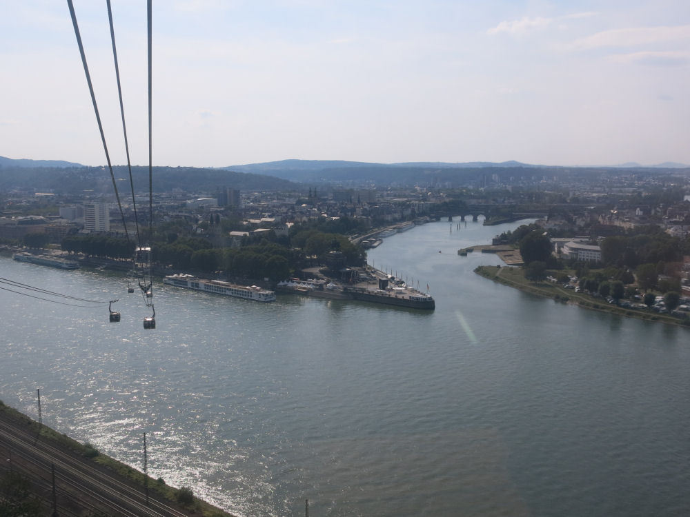 Köysiradalta aukesi hyvät näkymät Rein- ja Mosel-jokien yhtymäkohtaan. Laivan keulan näköistä niemenkärkeä kutsutaan nimellä 'Deutsches Eck' - saksalainen kulma. KOBLENZ