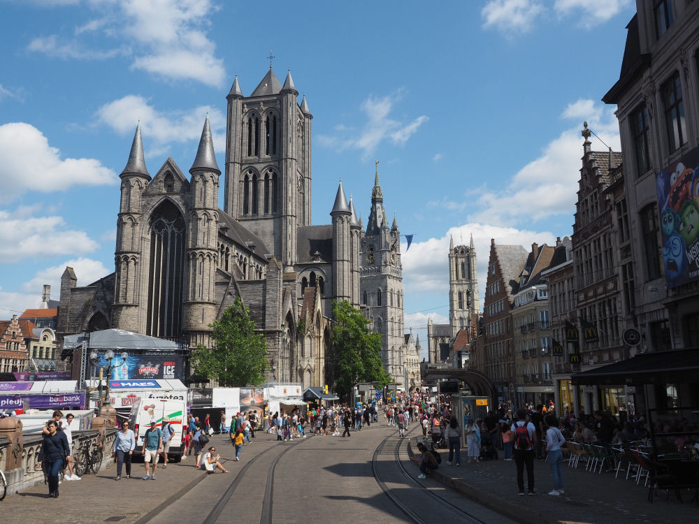 Vanhankaupungin kolme tärkeintä tornia: Pyhän Nikolauksen kirkko, Gentin kellotorni ja Pyhän Bavon katedraali. Gent, BELGIA