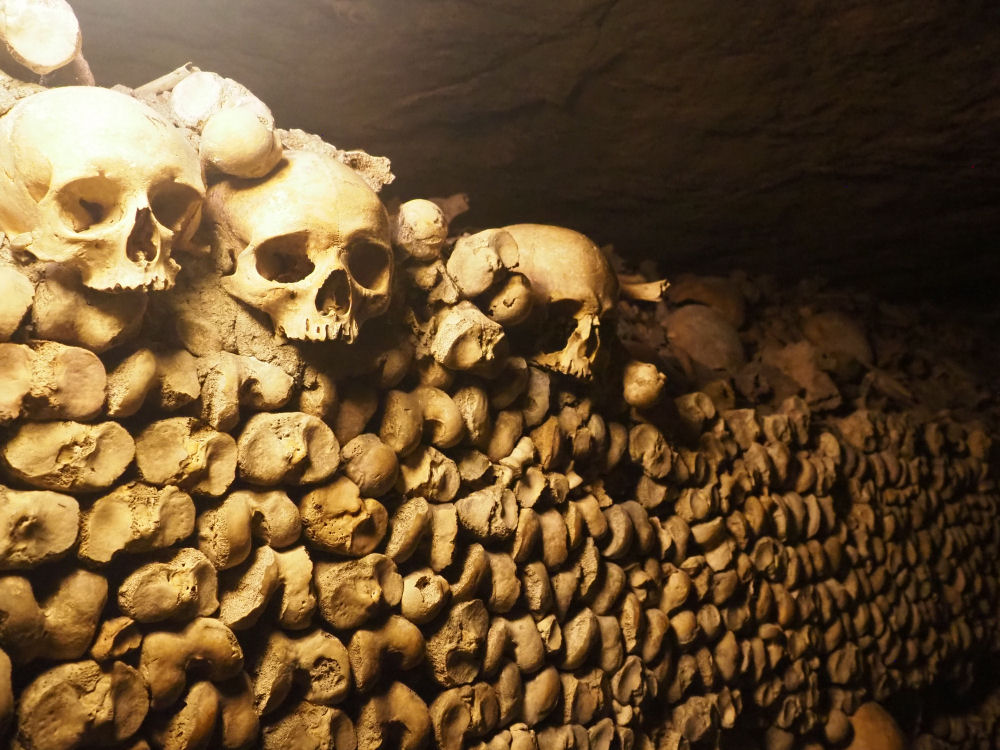 Pääkalloja ja luita on pinottuina tuhansittain käytävä toisensa perään.
