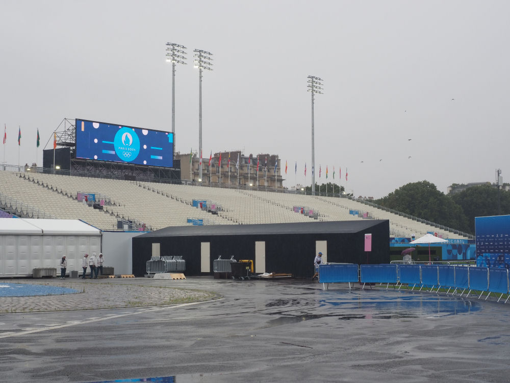 Paris 2024. Olympialaisten jousiammuntakenttä Esplanade des Invalidesilla. Vaikka mitään lajia ei käyty katsomassa, aion silti tulevaisuudessa sanoa olleeni paikalla Pariisin olympialaisissa 2024. Ja olinhan mä! Pariisi, RANSKA