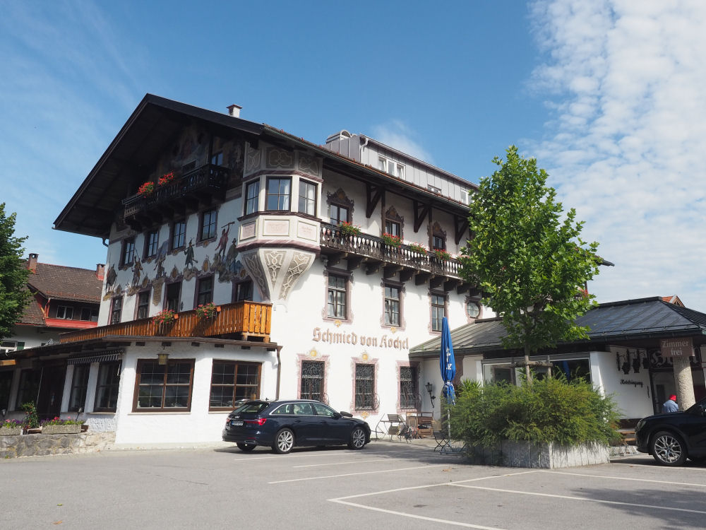 Päivä Alppien juurella alkoi hyvässä säässä, reissun ehkä hienoimman hotellin edessä... Kochel am See, SAKSA