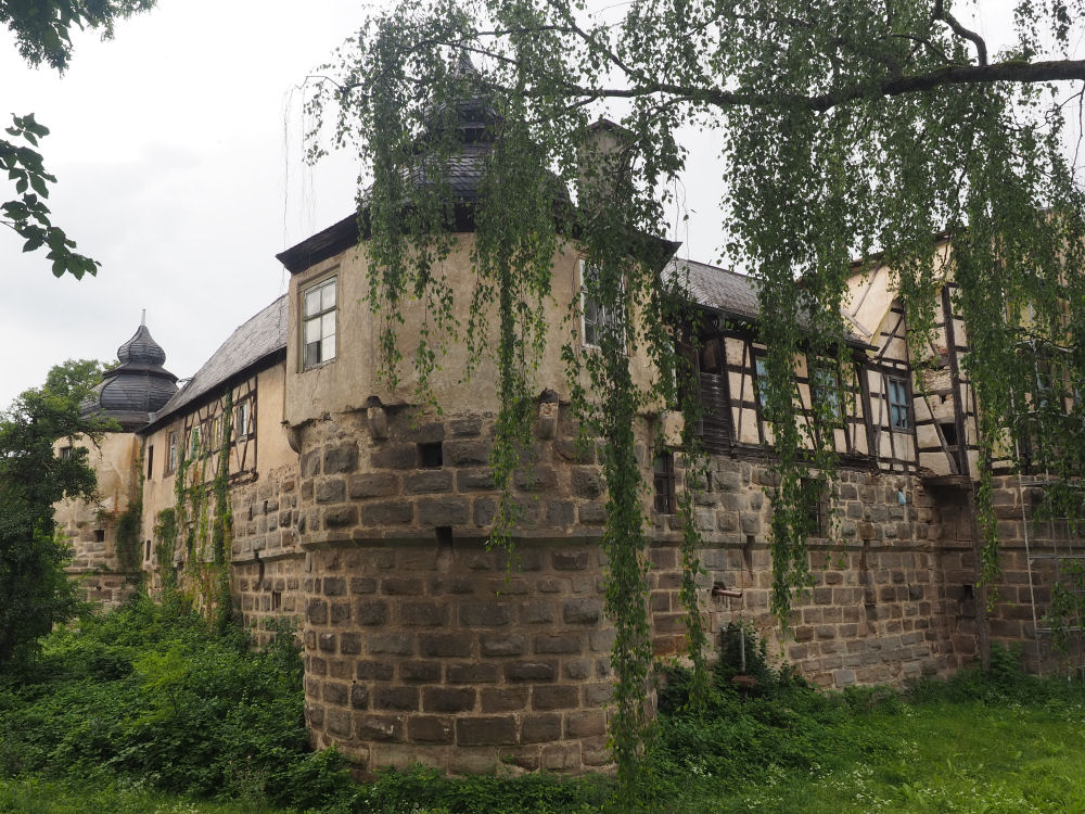 Ebelsbachin linna. 1500-luvulla rakennettu linna oli asuinkunnossa vuoden 2009 tuhopolttoon saakka. Päärakennus vaurioitui pahoin, mutta takakulma on vielä jonkinlaisessa kunnossa. Ebelsbach, SAKSA