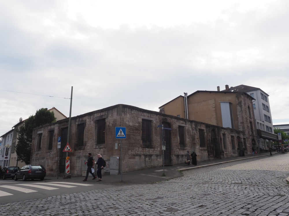 Garnisonkirche. Liittoutuneiden palopommit tuhosivat kirkon täysin lokakuussa 1943. Vaikka kirkko on jätetty sodanjälkeiseen asuunsa, on kivijalkaan rakennettu ravintoloita ja pieniä putiikkeja. Kassel, SAKSA