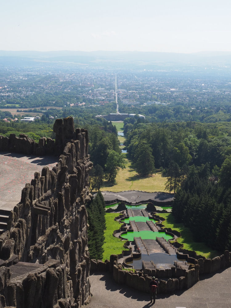 Bergpark Wilhelmshöhe. Vesiputous oli poissa käytöstä. Niinkuin se ymmärtääkseni useimmiten nykyään on. Kassel, SAKSA
