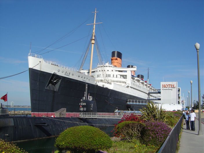 Alkuperäinen Queen Mary Long Beach'in satamassa. Alus toimii nykyään enää hotellina (ja turistinähtävyytenä). LOS ANGELES