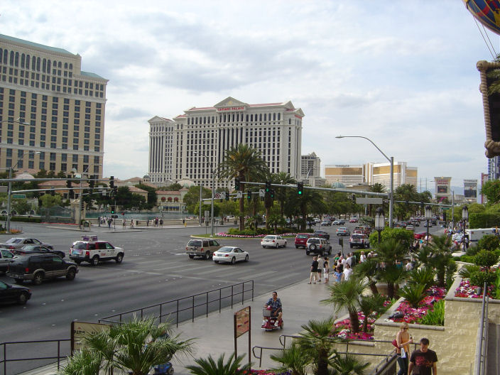 Las Vegas Boulevard (The Strip) ja luksushotelleja.