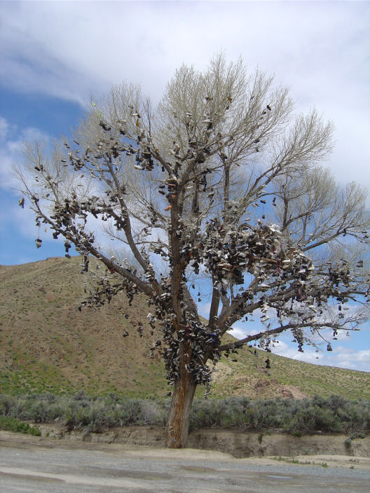 Puu täynnä kenkiä?! Joku on aloittanut aikanaan heittämällä omat kenkänsä puuhun ja tätä on sitten muut jatkaneet. Ehkä. EUREKA
