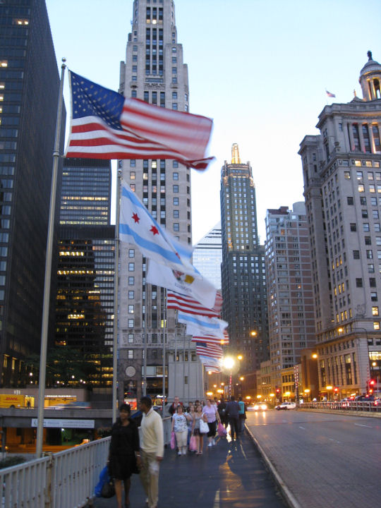 Amerikan, Chicagon ja Illinoisin liput liehuu. Amerikassa aina jotkut liput liehuu.