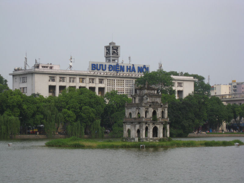 Pääposti ja Kilpikonnasaari Hoan Kiem-järvessä.