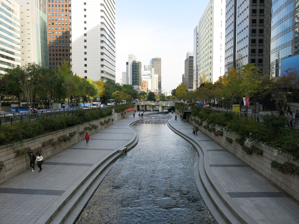 Cheonggyecheon-joki peitettiin betonilevyillä 1950-luvun lopulla, kun väestönkasvu ja lisääntyvä liikenne vaati uutta tilaa. Vuonna 2005 betonikannet otettiin pois ja alue kunnostettiin yleiseksi virkistysalueeksi.