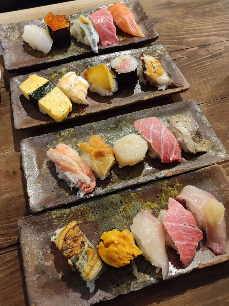 Endō Sushi. Liki tunnin jonotus yli satavuotiaaseen ravintolaan. Mutta oli vimpan päälle hyvää! OSAKA
