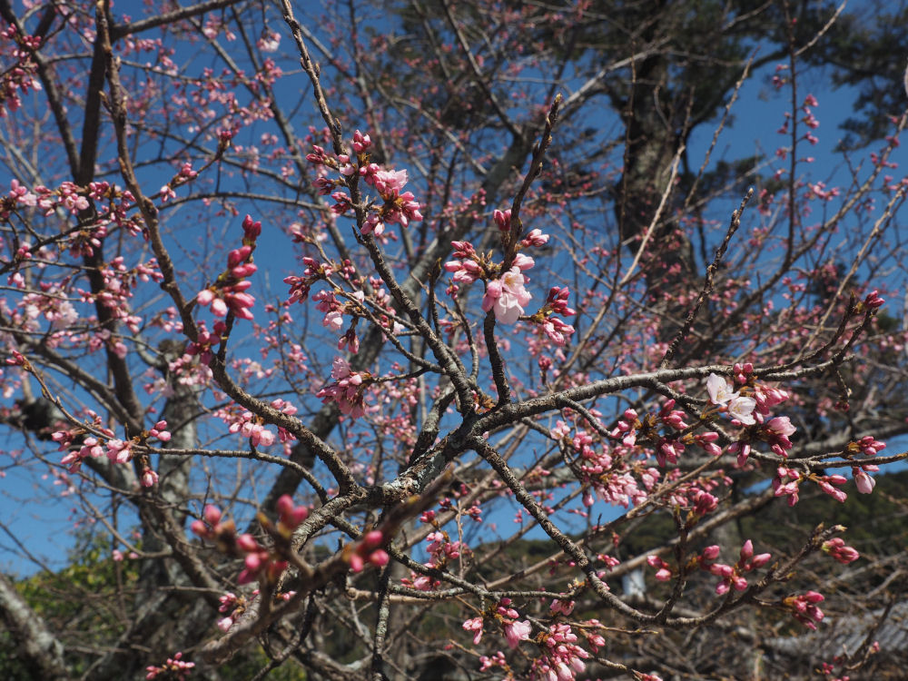 Kirsikankukkien kukintaan, sakura-aikaan, olisi ollut pari viikkoa aikaa. Joissakin puissa kuitenkin jo jonkinlaisia kukintoja oli. KIOTO