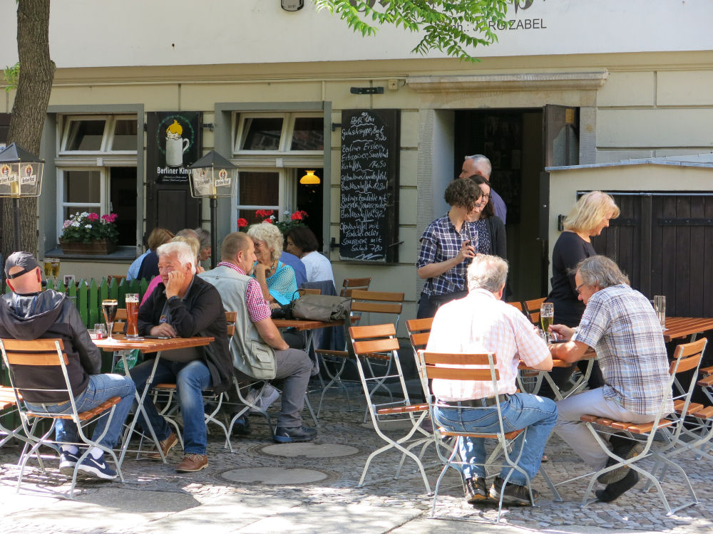 Saksalaiset, miehet ja naiset, istuivat oluella.