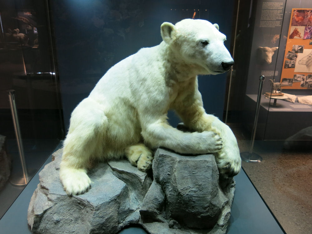 Luonnonhistoriallinen museo. Berliiniläisessä eläintarhassa (Zoologischer Gartenissa) syntynyt ja elänyt, ehkä maailman kuuluisin jääkarhu, Knut, täytettynä museossa. MITTE