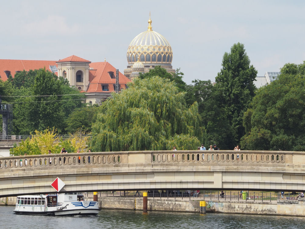 Uuden synagogan hieno ja iso kupoli. Ns. Kristalliyönä marraskuussa 1938 natsien SA-joukot yrittivät polttaa synagogan, mutta Berliinin poliisi ja palokunta saivat pelastettua rakennuksen.