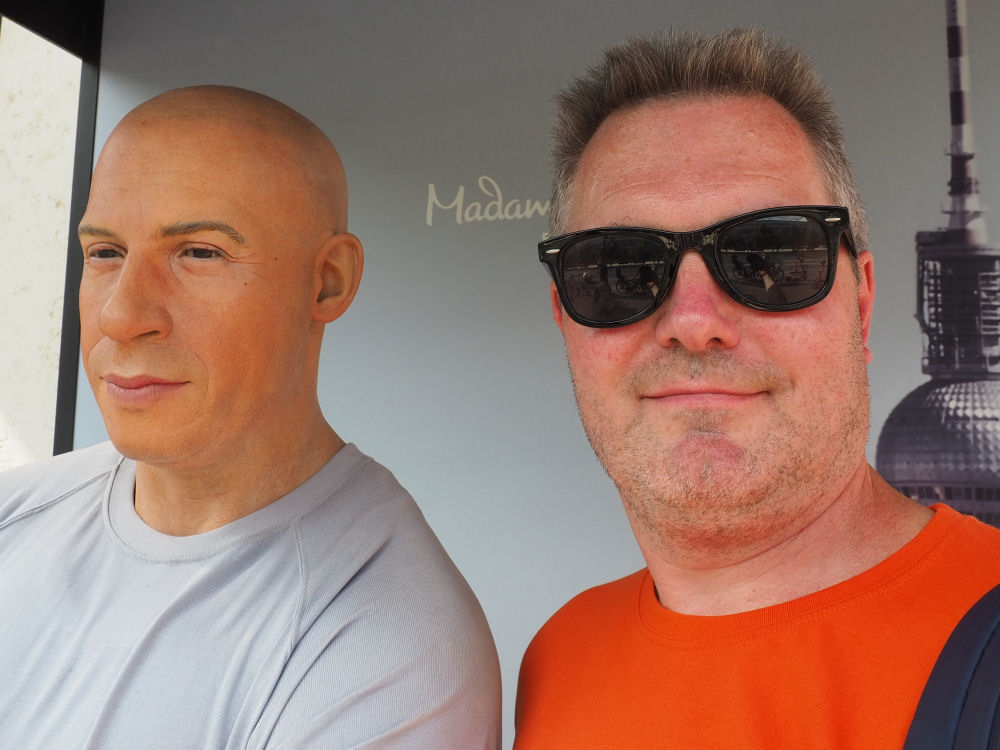 Madame Tussauds. Huikkasin Dieselin Vinin nopeaan yhteiskuvaan. Ei se vaivautunut edes kameraan katsoon. MITTE