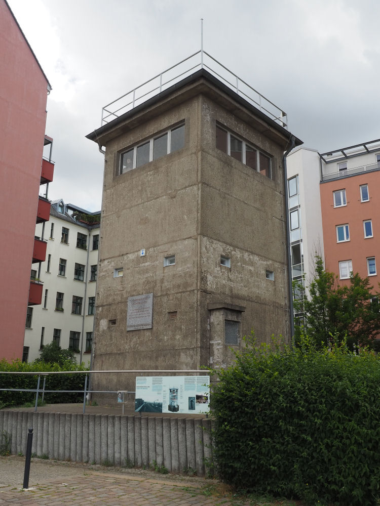 Vanha itäsaksalainen vartiotorni. Torni on nimetty Günter Litfinin muistomerkiksi. Mies yritti vuonna 1961 uimalla paeta Länsi-Berliinin puolelle, mutta tuli ammutuksi kanaaliin itäsaksalaisten rajavartijoiden toimesta. MITTE