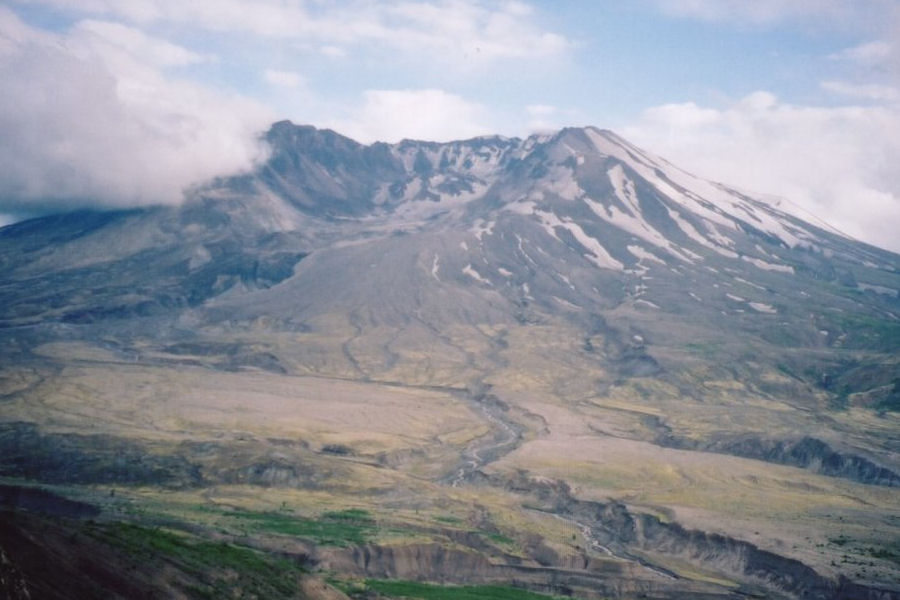 St. Helens. Vuonna 1980 tuhoisasti purkautunut vulivuori. Vielä 22 vuoden jälkeenkin maasto on puutonta ja karua. TOUTLE