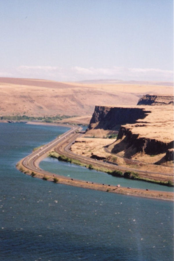Osavaltioiden välinen rajajoki Columbia River. Oregonin osavaltio taustalla.