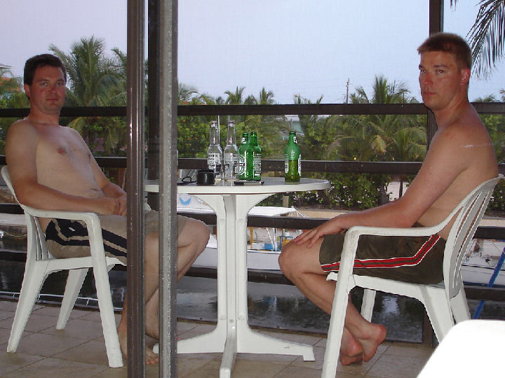 Matkan överein majoitus Key Largolla. Kaksi kerrosta, kolme makuuhuonetta, olohuone, parveke, terassi, keittiö, WC ja satamanäkymät. Silti vain 35$ per mies per yö.