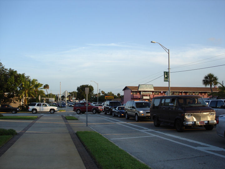 Ruuhka pikkukaupungissa. Tuhannet ihmiset saapuivat seuraamaan avaruussukkulan laukaisua.