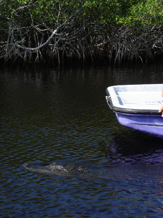 Alligaattori tuli ihmettelemään pinnan hälyä.