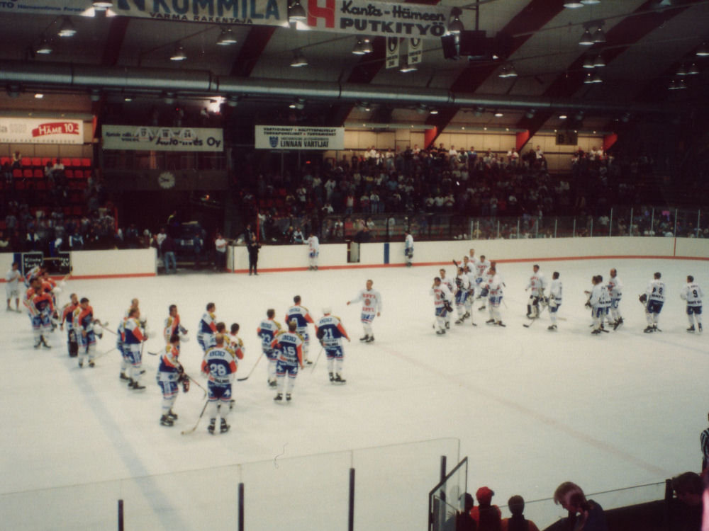 Laru All-Stars voitti 11-10. Lartaman paita (24) nostettiin juhlallisesti hallin kattoon, josta se kuitenkin käsittääkseni Harri Lintumäen yksipuolisella päätöksellä otettiin alas vuonna 2005,