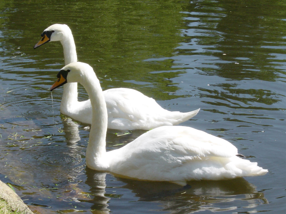 Aulangon Joutsenlammen kyhmyjoutsenet Aino ja Janne.