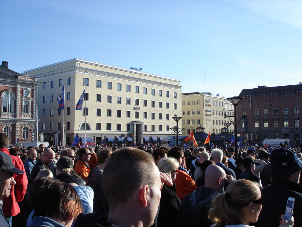 HPK:n ensimmäinen Suomenmestaruus keräsi arviolta 10.000-15.000 juhlijaa Hämeenlinnan torille.