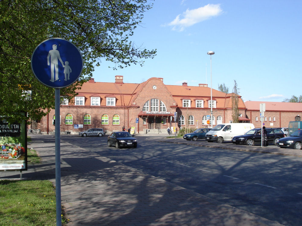 Hämeenlinnan rautatieasema. Mainittakoon, että Suomen ensimmäinen henkilöliikenteen rataosuus Helsingistä Hämeenlinnaan avattiin 31. tammikuuta 1862.