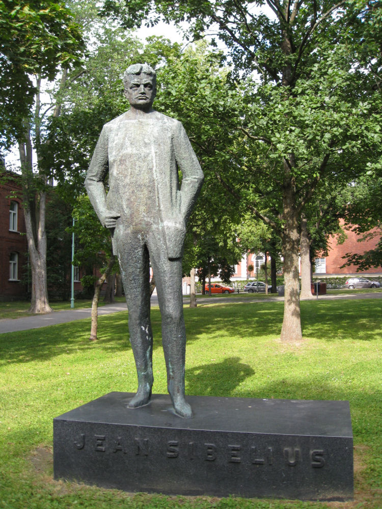 Säveltäjä Jean Sibeliuksen patsas yltä päältä lokinpaskassa nimikkopuistossaan.