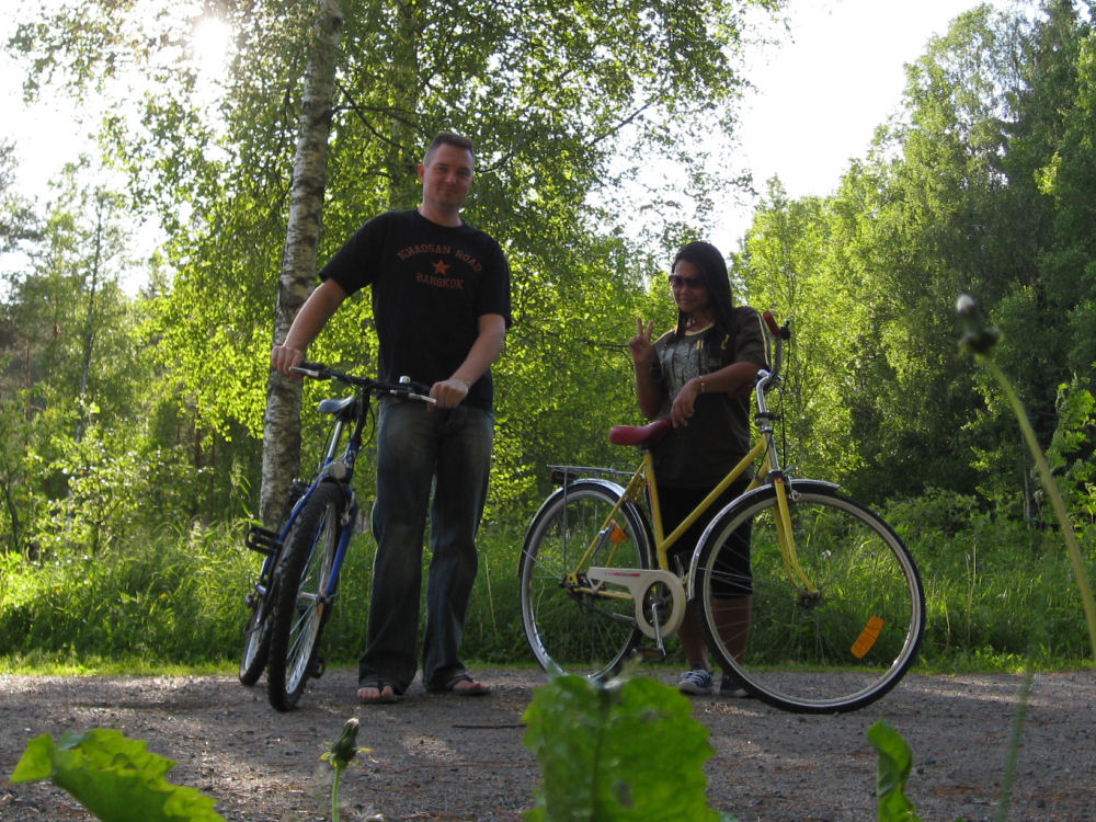May pääsi ensimmäistä kertaa Suomeen. Alettiin pyöräilemään heti kaupunkia tutuksi.