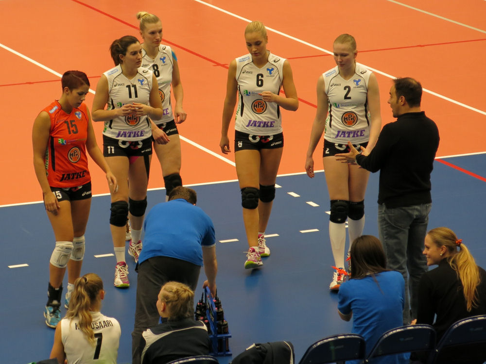 Elenia Areena. Nikola Senkova (15), Lexi Erwin (11), Anna Boricheva (8), Karoliina Friberg (6), Piia Korhonen (2) ja italialaisvalmentaja Bruno Napolitano.