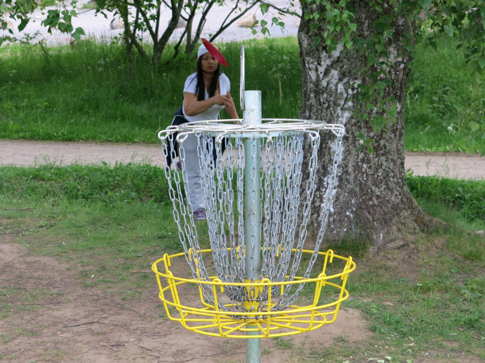 Olen saanut Maynkin pikku hiljaa innostumaan frisbeegolfista.
